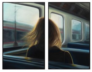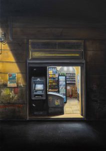 À travers ses peintures, il isole des scènes et des instants suspendus, comme figés hors du temps.