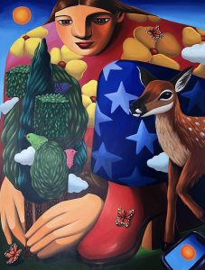 - Annabel Faustin« Protéger le temps des forêts » (Protecting the song of Nature) Size: 116 x 89 cm